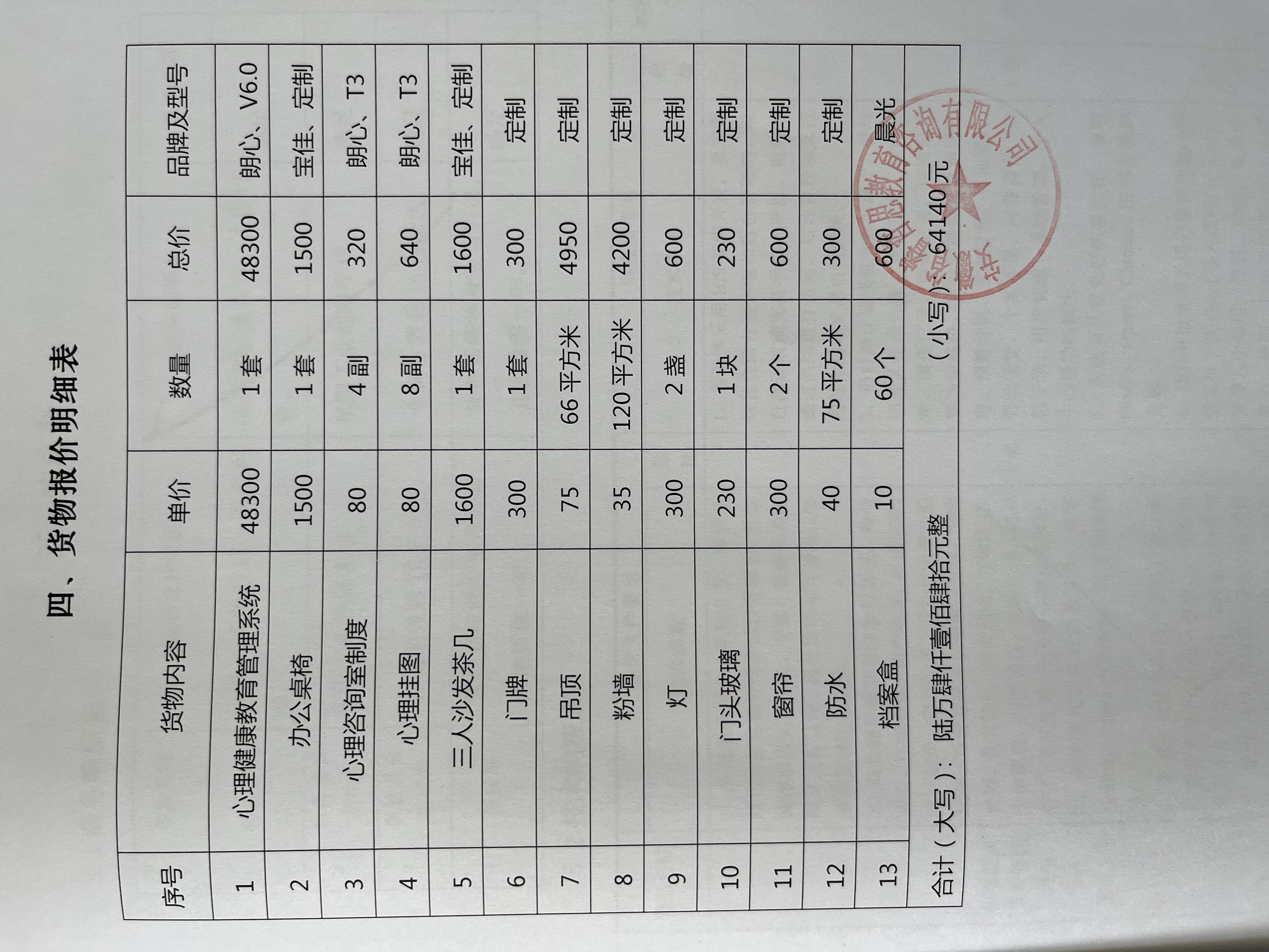 项目名称:阜阳工业经济学校改建心理咨询室物品采购项目