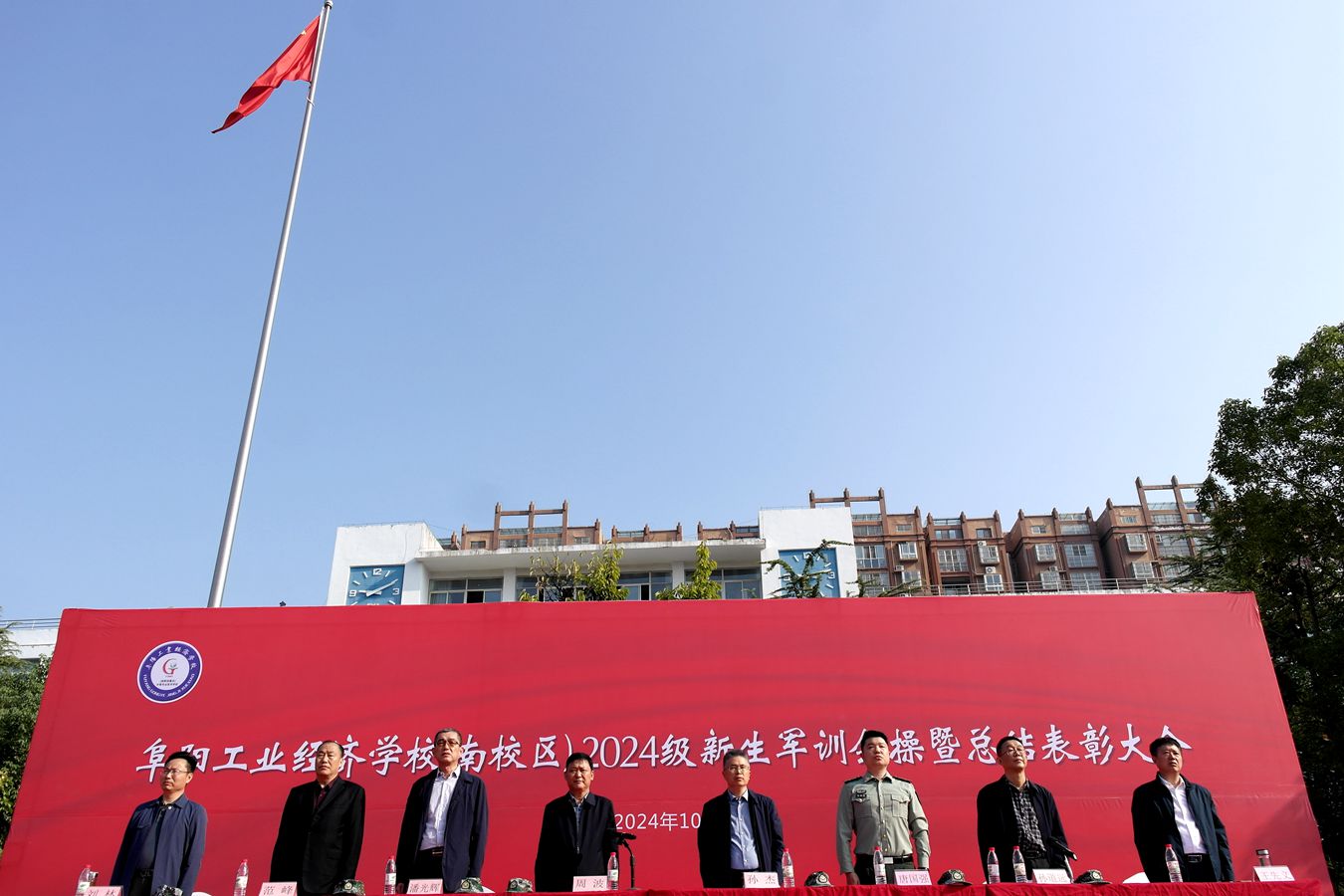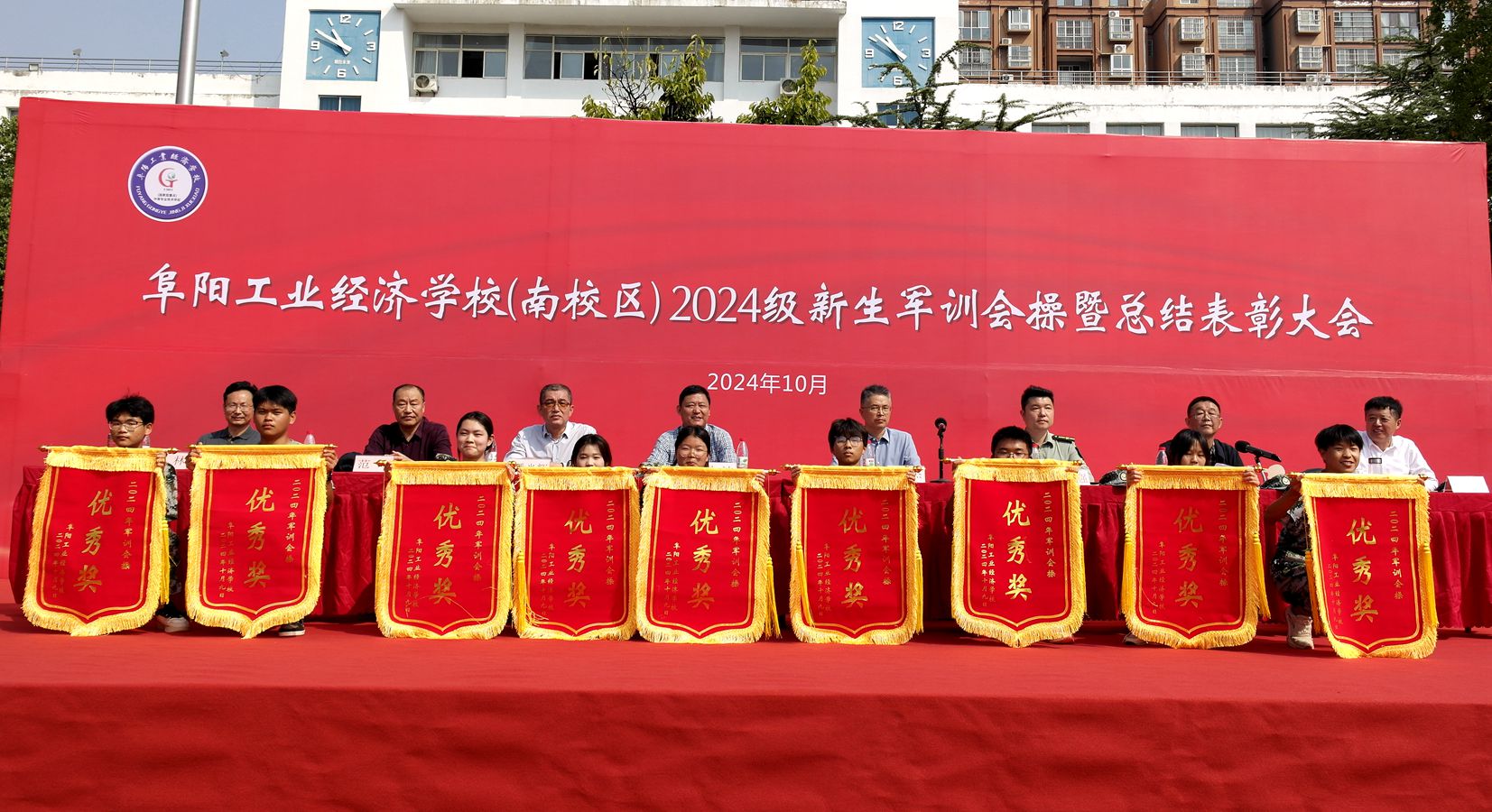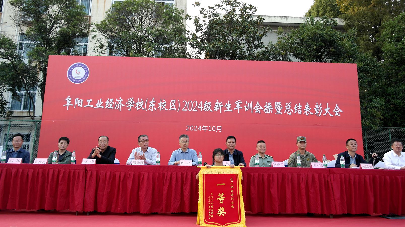 10月9日,阜阳工业经济学校2024级新生军训会操暨总结表彰大会在两校区田径场举行。校党委书记周波,副书记、校长孙杰,颍州区人武部教官、部分班子成员、2024级班主任及全体新生参加了大会。大会由党委委员、副校长孙道远主持。