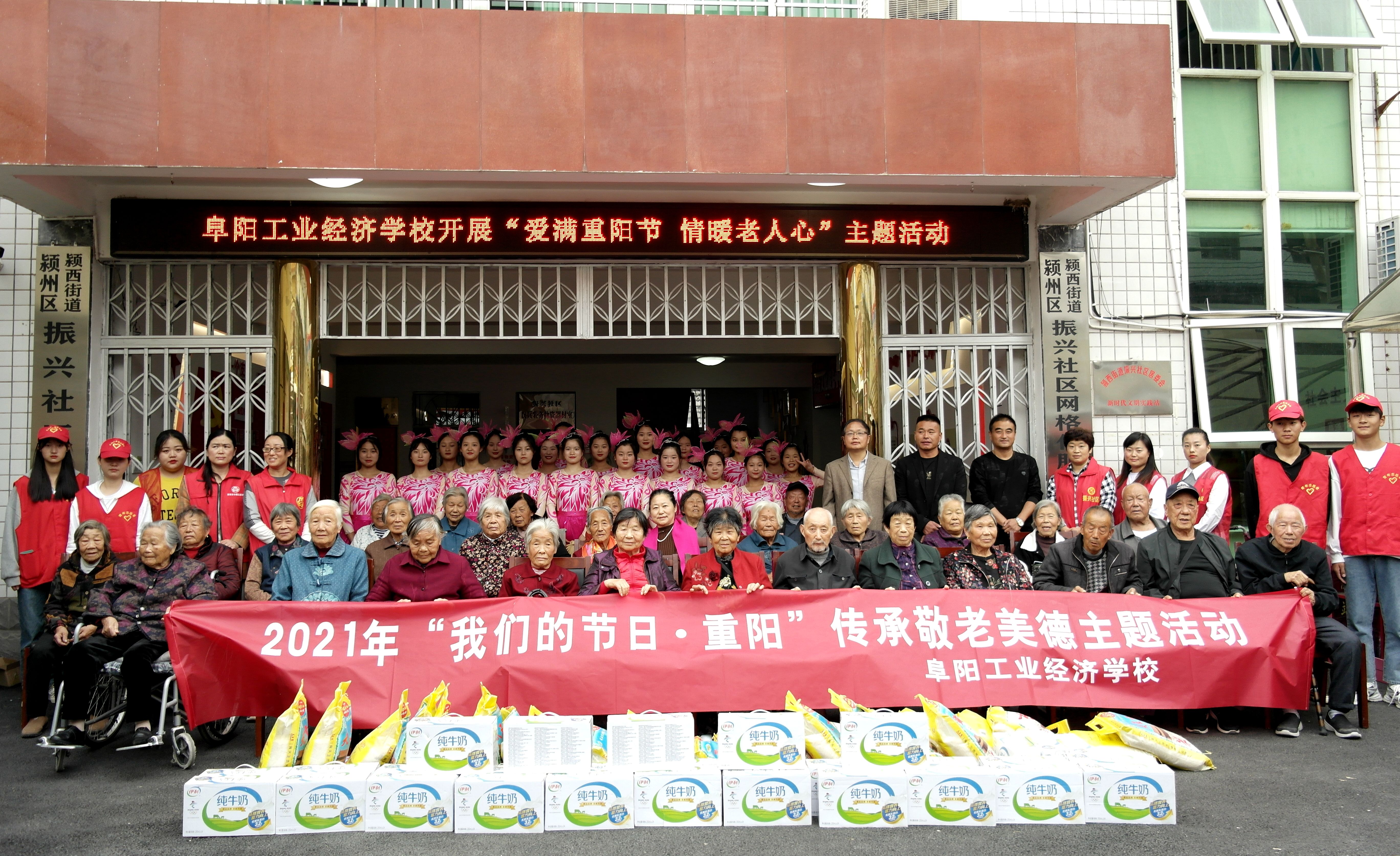 为大力弘扬中华优秀传统文化,培育和践行社会主义核心价值观,传承中华民族尊老、敬老的传统美德,10月14日下午,阜阳工业经济学校赴颍州区振兴社区开展“我们的节日·重阳”传承敬老美德主题活动。校党办主任李伟和志愿者、学生演出人员一行30余人参加活动。