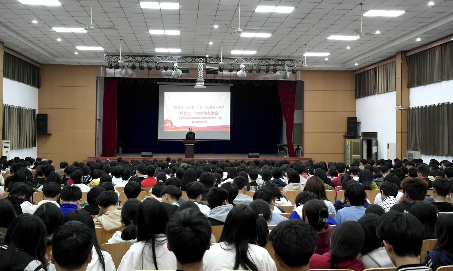 为深入学习宣传贯彻党的二十大精神,切实引导全校师生坚持正确政治方向,增强政治责任感和使命感,把思想和行动统一到党的二十大精神上来,把党的二十大精神落实落细、走深走实,4月26日下午,市微宣讲团成员、市财政局微宣讲团成员、我校教师袁茹作学习“党的二十大精神”专题宣讲,800余名师生到会聆听。