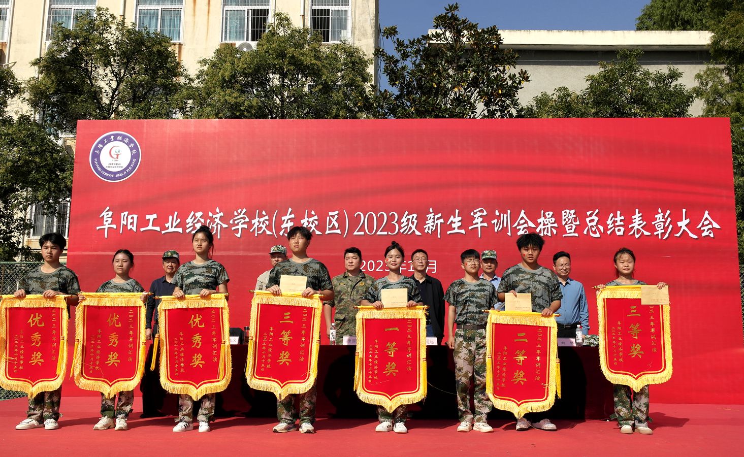 阜阳工业经济学校举行2023级新生军训会操暨总结表彰大会