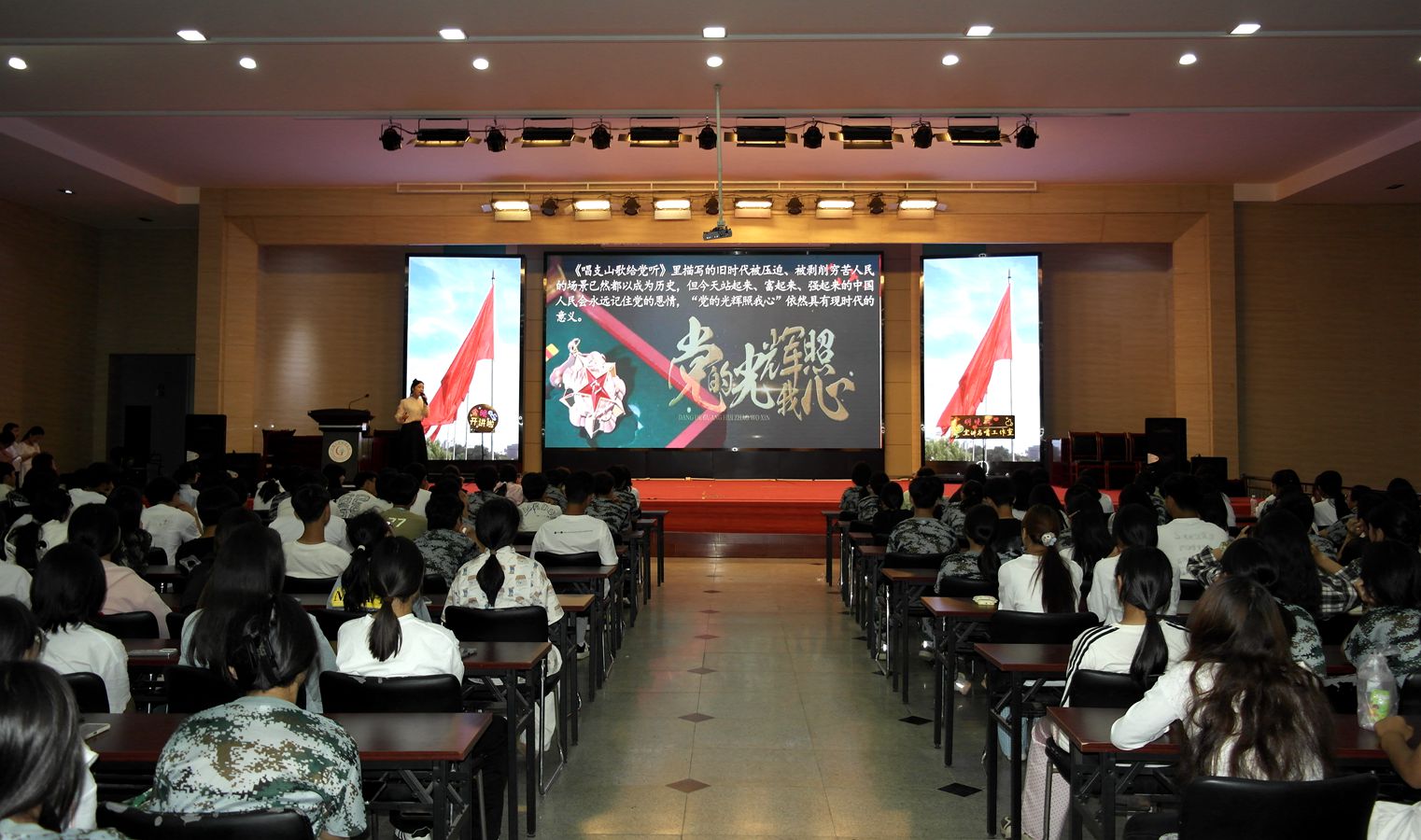 9月25日晚,由阜阳市社科联、胡晓岚宣讲名嘴工作室、阜阳市音协志愿服务队和颍泉区音协志愿服务队主办的“今晚开讲啦·歌声里的党史故事”暨学习党的二十届三中全会精神微宣讲党史篇在阜阳工业经济学校隆重举行,为在场师生带来了一次震撼心灵的红色之旅。