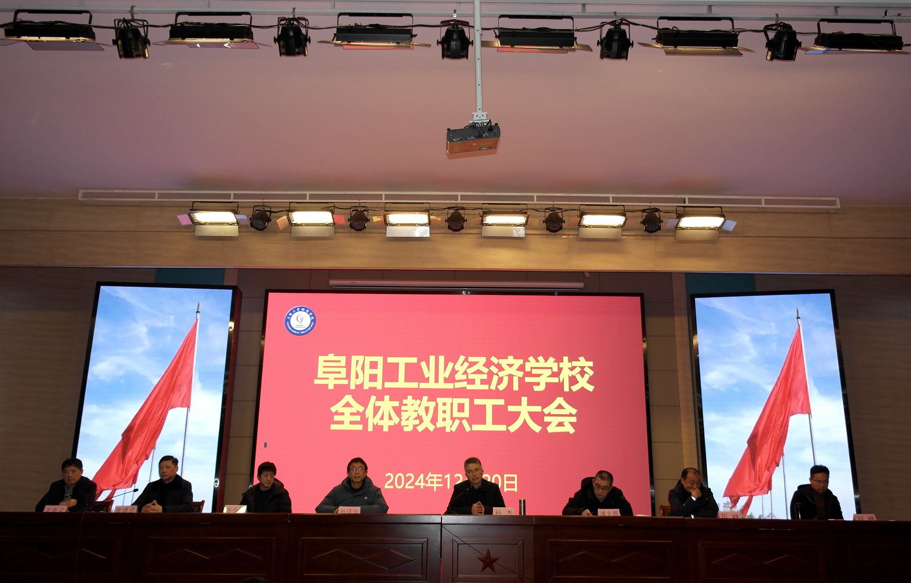 12月20日,阜阳工业经济学校召开全校教职工大会,全体教职员工参加会议。会议由校党委副书记、校长孙杰主持。