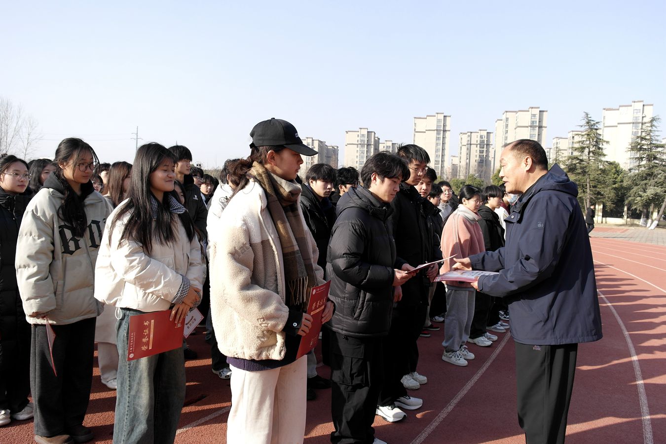 随后,党委委员、副校长孙道远作了专题讲话。他指出,期末考试是对我们一学期以来学习成效的一次全面检验,不仅反映了我们对知识的掌握程度,还体现了我们在面对压力时的心态和解决问题的能力。在复习过程中,应当注重对基础知识的理解,对于薄弱环节要进行针对性的强化训练。他强调,要认识到在日常生活中“防患于未然”的重要性,注意火源管理,预防火灾事故的发生,注意食品安全、交通安全、冬季流感等事宜,并呼吁学生们加强日常行为规范和养成文明习惯。