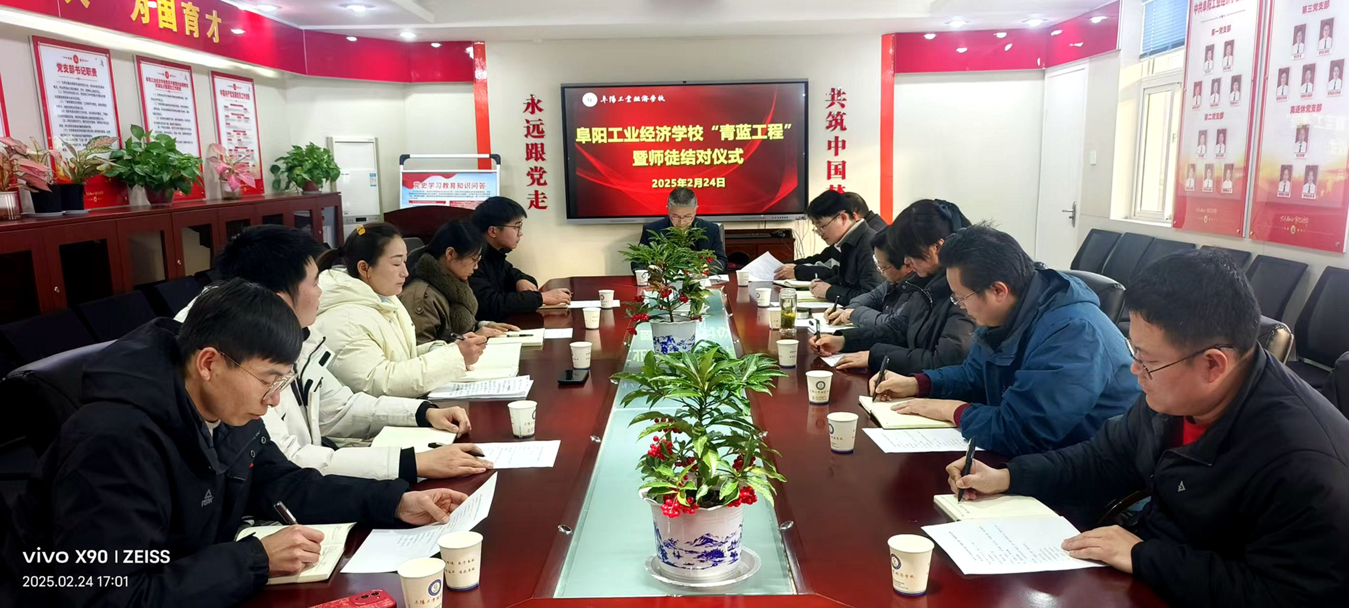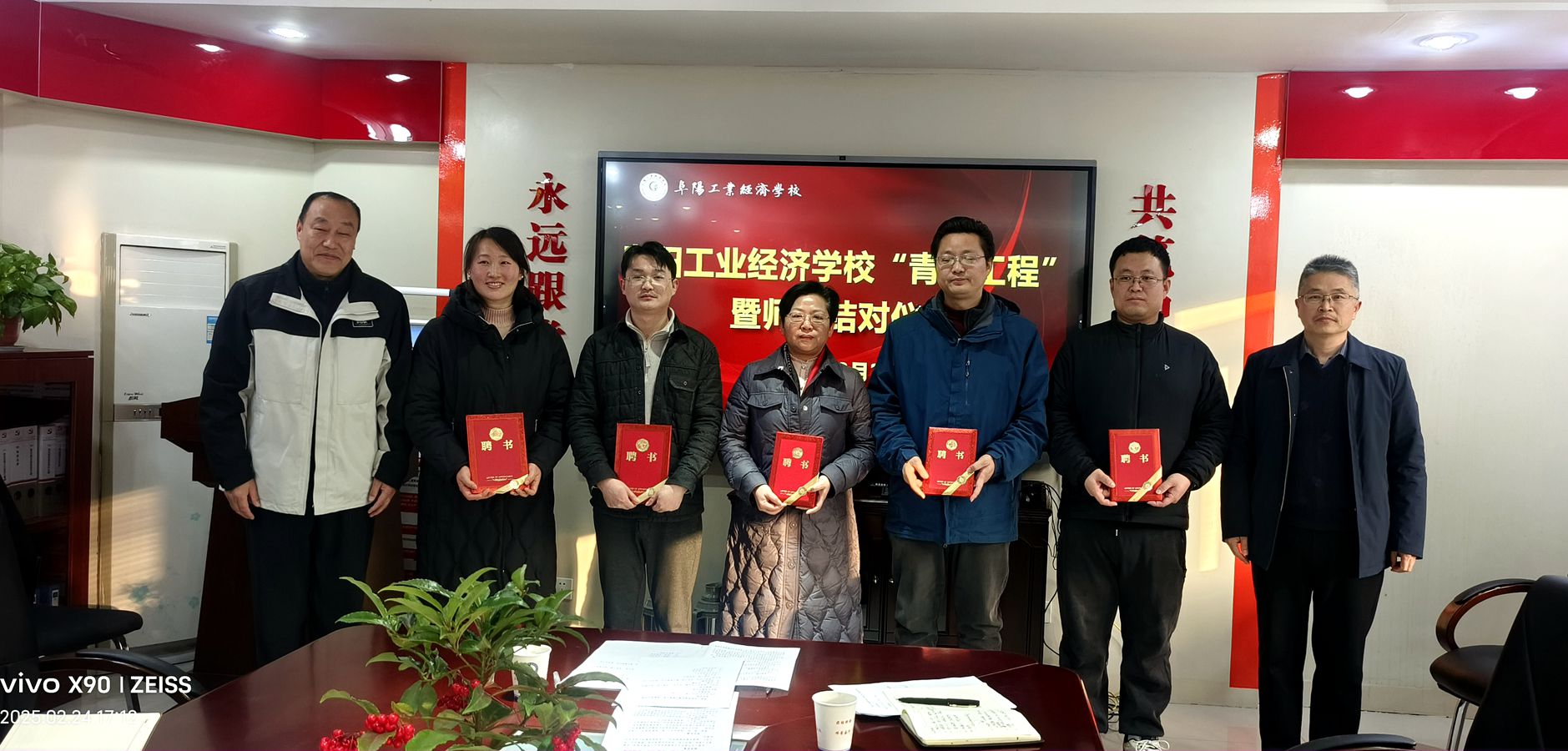 春光为序,共赴新程。为进一步提高青年教师的教育教学水平,促进青年教师更好、更快地成长,充分发挥优秀教师的示范引领作用,提升教师队伍专业化水平,2月24日,我校在行政楼四楼会议室举办2025年春季“青蓝工程”师徒结对仪式,仪式由教研室负责人时本强主持。