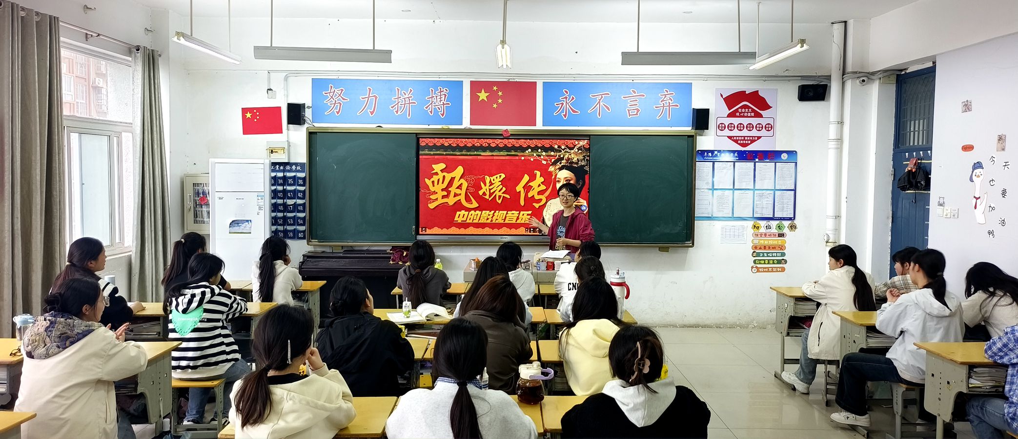 4月21日下午第7节课,凌安琪老师在2024级幼儿保育3班开展《甄嬛传中的影视音乐》公开课示范教学。凌老师以影视音乐为切入点,通过分析剧中经典配乐的艺术特点,挖掘其中蕴含的中国传统音乐美学和文化内涵,增强学生对传统文化的认同感,激发学生传承和发扬我国优秀传统文化的热情,让学生在音乐的世界里接受思政教育的熏陶。