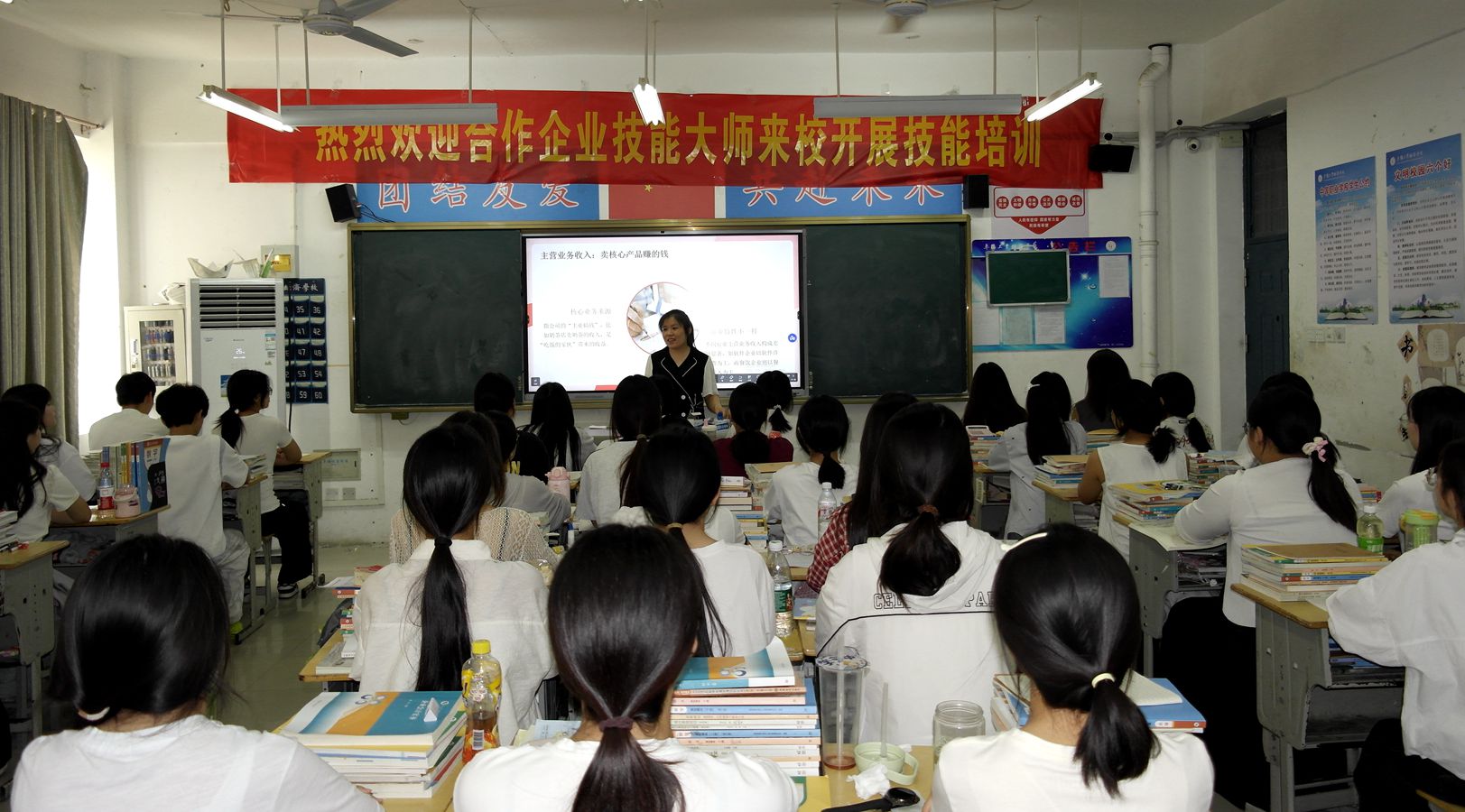 5月21日,阜阳工业经济学校2025年职业教育活动周“技能人才风采日”活动在南校区顺利开展。本次活动以“匠心传承育新人”为主题,特邀合作企业阜阳市兴业财务管理有限公司、高级会计师张灵和合肥长安汽车有限公司、高级技师王俊峰为会计专业及汽修专业200余名学生开展专题讲座。