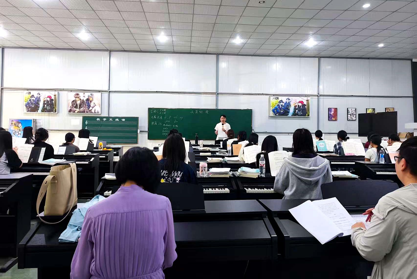 5月28日上午第1节课,丁克江老师在2022级幼儿保育2班开展《天真烂漫》公开课示范教学。课堂上,丁老师在指导学生攻克连续十六分音符弹奏、跨指缩指技巧等专业难点时,巧妙引入德国作曲家布格缪勒的创作背景,让学生在理解西方钢琴艺术的同时,通过共唱《南北谣》民谣,在 “吃端午的粽子龙舟划呀划” 的旋律中感受端午民俗的韵律之美,强化了学生对民族音乐文化的认同感。