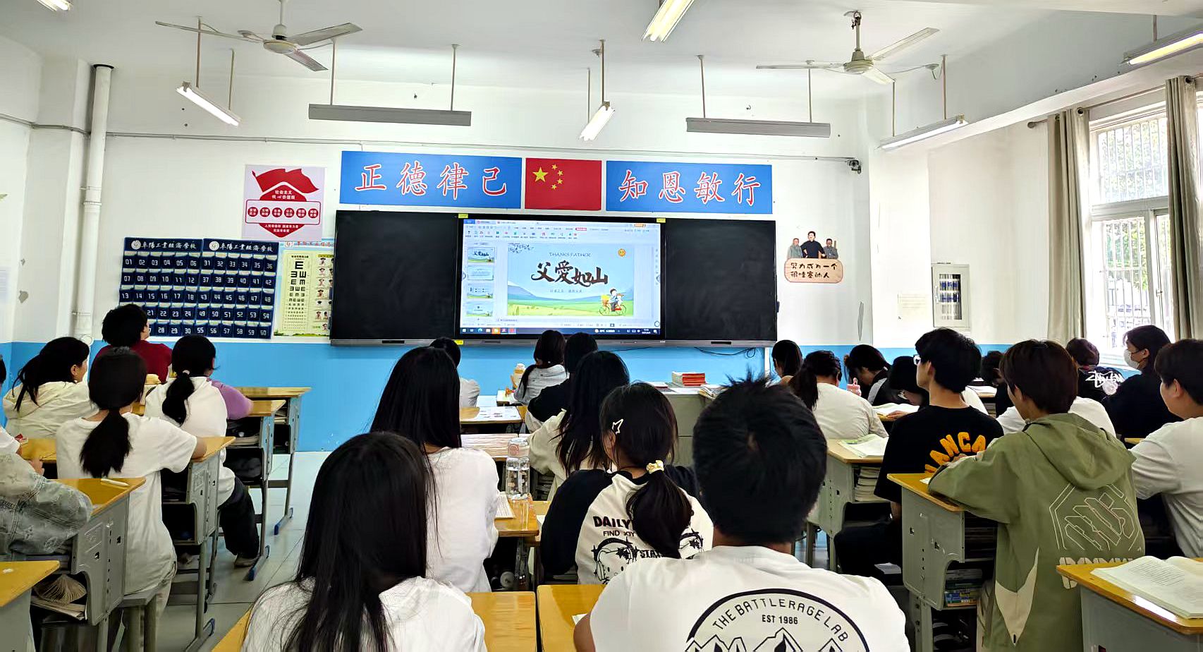 班会伊始,各班级播放精心剪辑的父亲节主题视频,聚焦父亲陪伴孩子成长的温馨瞬间、默默付出的感人故事,以生动画面迅速拉近学生与父爱的情感距离,为活动奠定温暖基调。