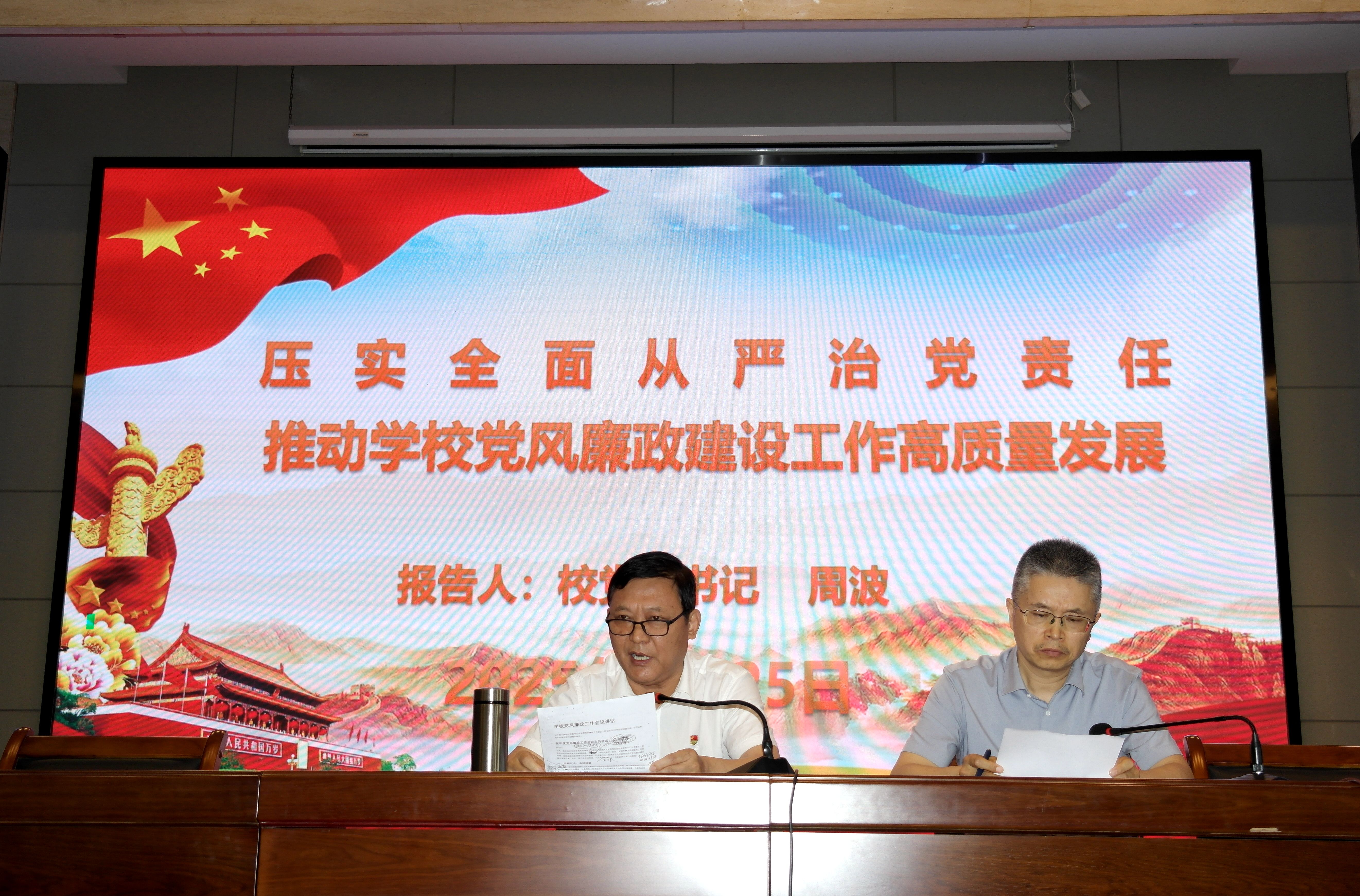 6月25日,阜阳工业经济学校在南校区多功能报告厅召开2025年党风廉政建设和反腐败工作会议,校领导班子及全体教职工参会,共筑清廉校园建设防线。
