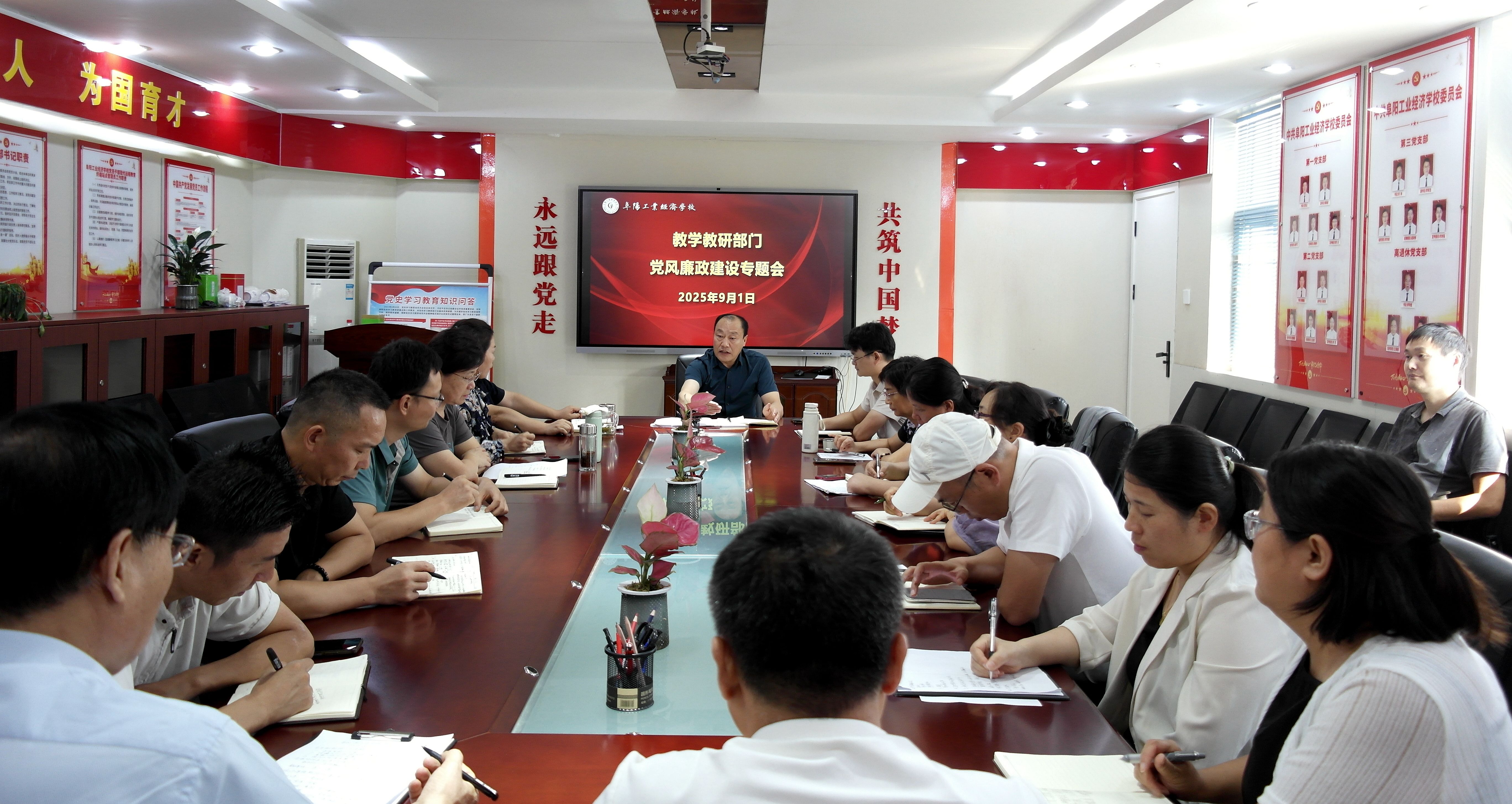 9月1日,我校教学教研部门召开教学工作暨党风廉政建设工作会议,统筹部署新学期教学质量提升与廉洁校园建设重点任务。教务处、教研室及所属部门负责人参会,校党委委员、副校长范峰主持会议。