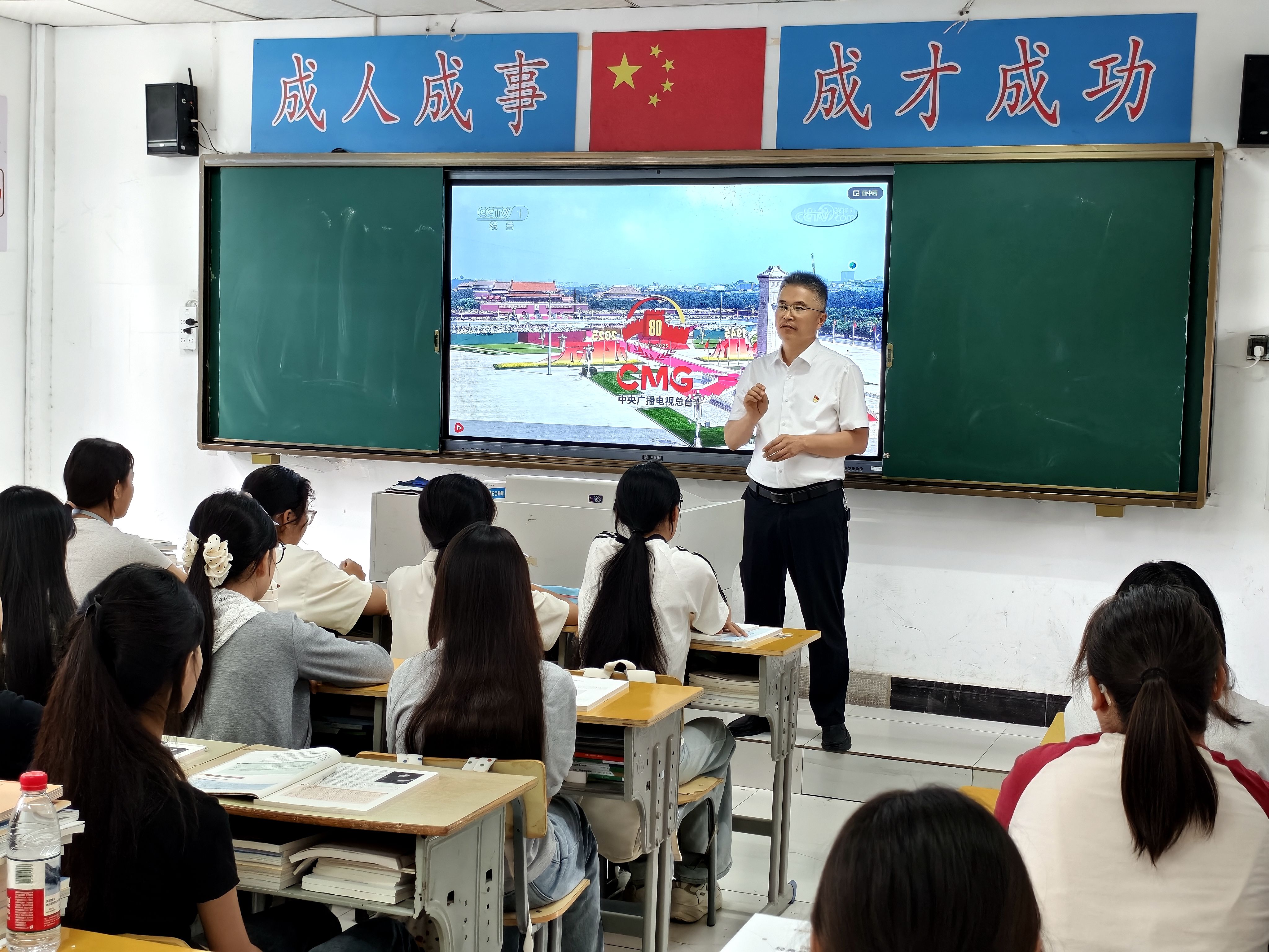 9月3日,我校党委组织党委班子成员、党员教师深入班级,与学生们共同观看纪念中国人民抗日战争暨世界反法西斯战争胜利80周年阅兵式,通过“党建 + 团建”的创新形式,将思政教育融入生动的实践场景。