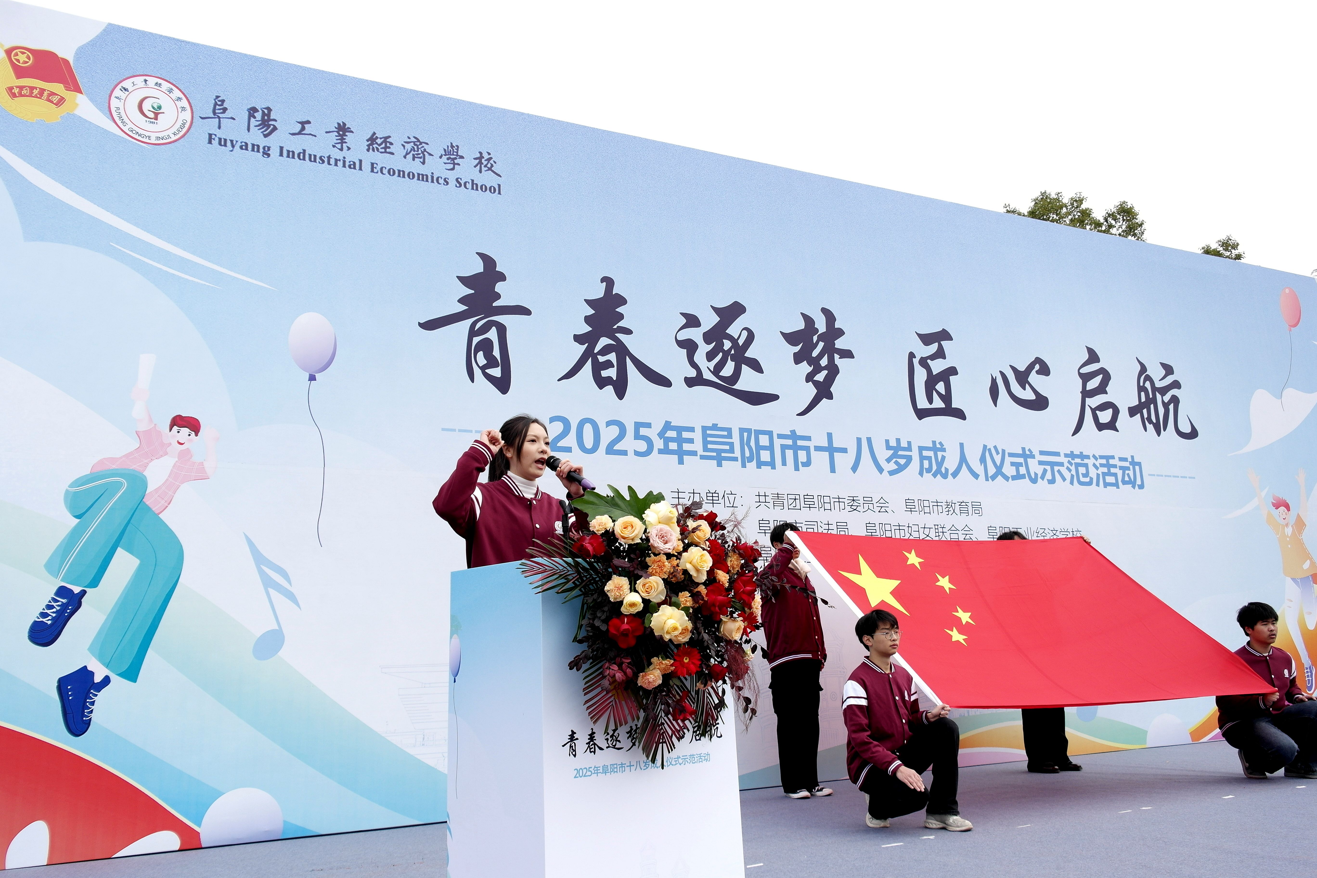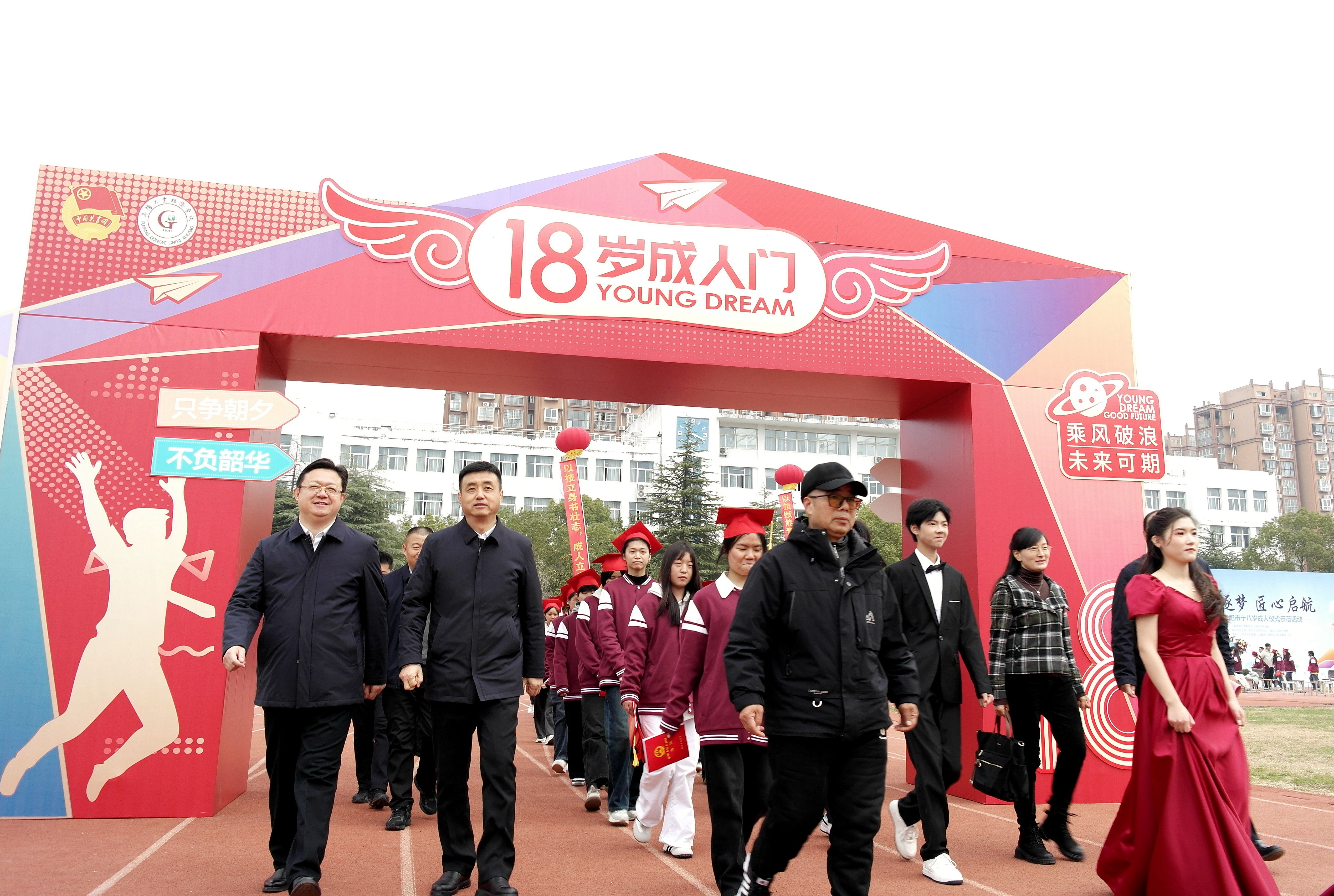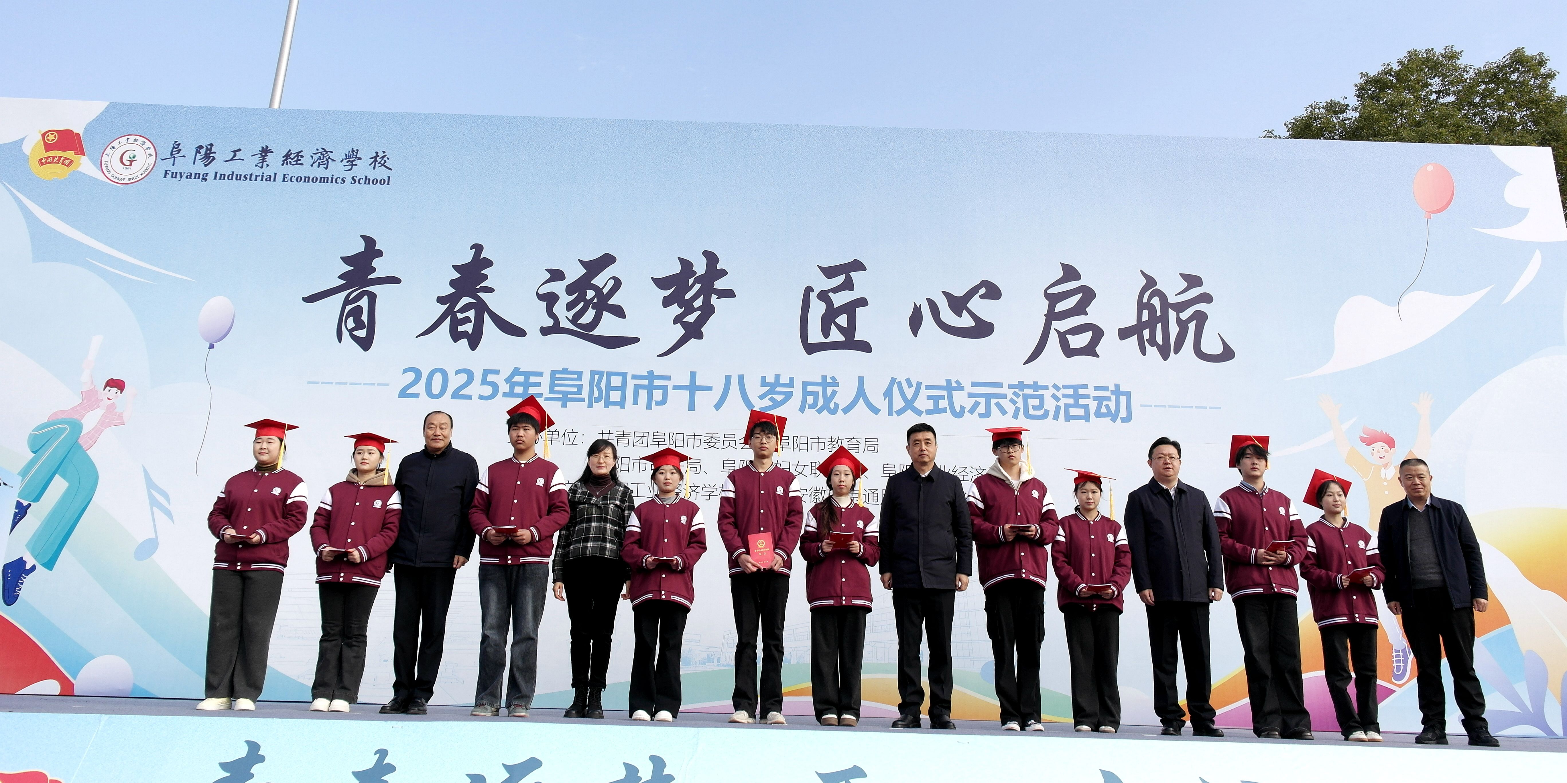 12月4日上午,由共青团阜阳市委员会、市教育局、市司法局、市妇联联合阜阳工业经济学校主办的 "青春逐梦 匠心起航"2025年阜阳市十八岁成人仪式示范活动,在我校隆重举行。校党委书记陈颍峰、团市委书记许灿分别致辞,市妇联党组成员、副主席于贺,市教育局职业与成人教育发展中心主任谷子明,校党委委员、副校长范峰出席活动。