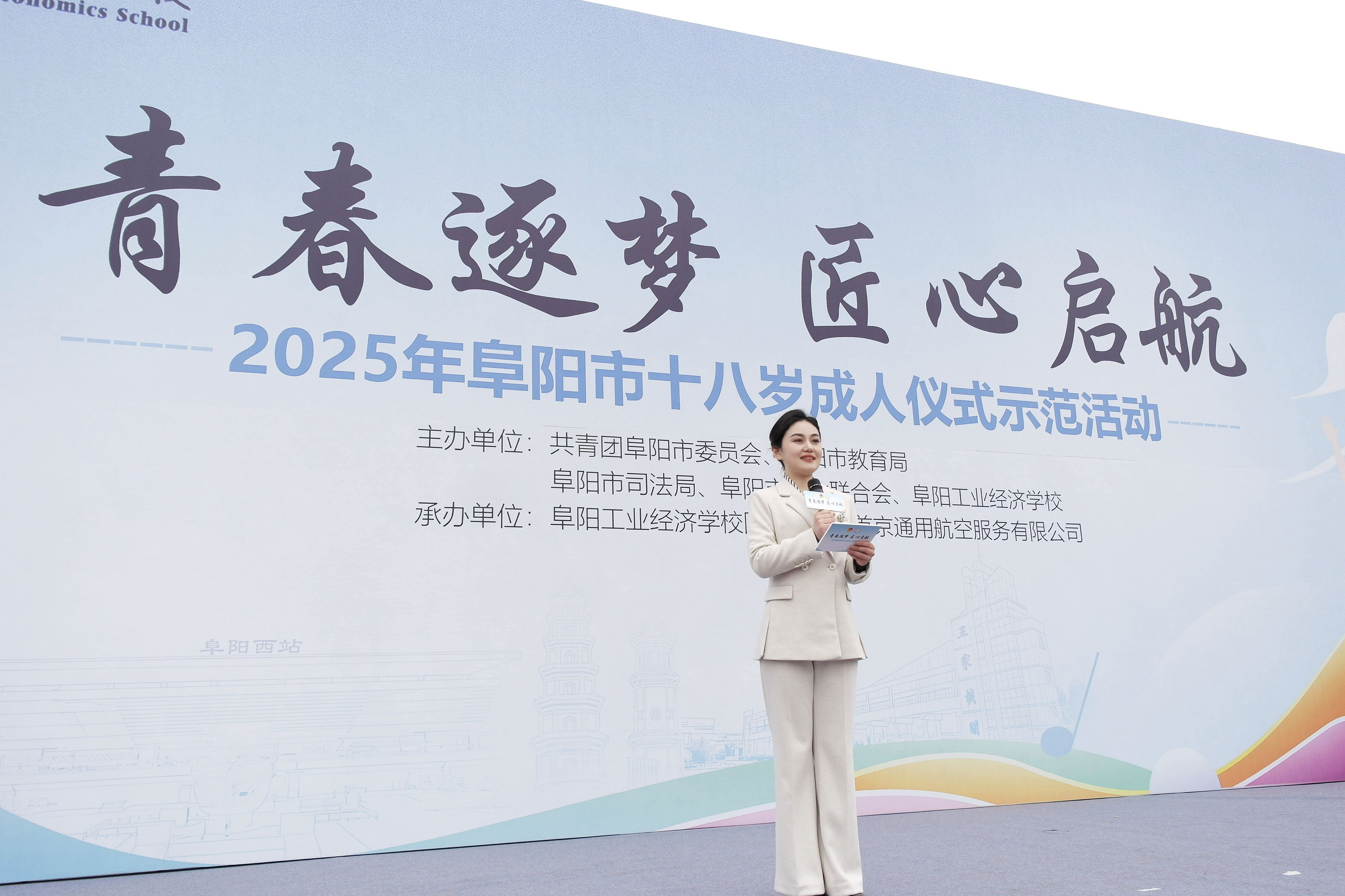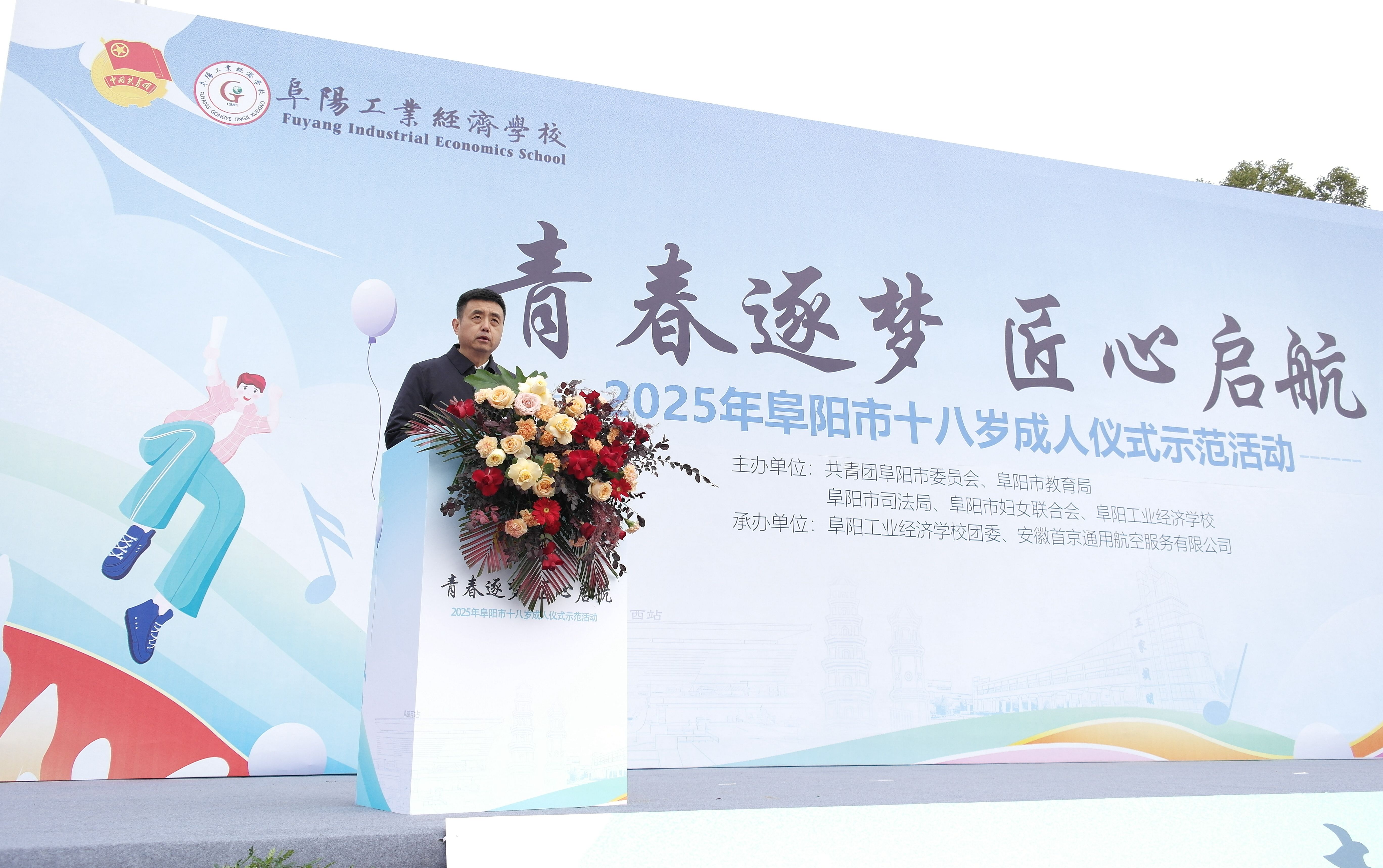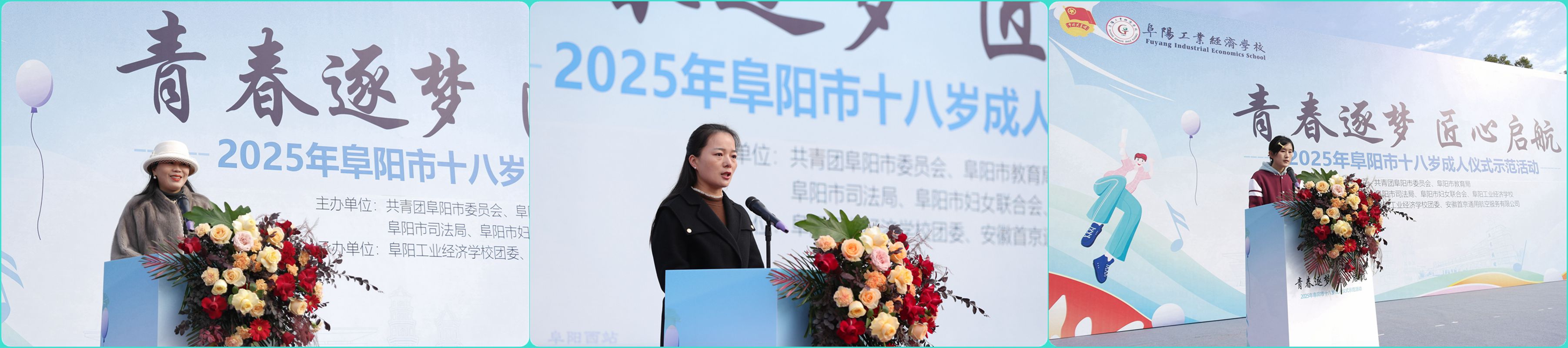 12月4日上午,由共青团阜阳市委员会、市教育局、市司法局、市妇联联合阜阳工业经济学校主办的 "青春逐梦 匠心起航"2025年阜阳市十八岁成人仪式示范活动,在我校隆重举行。校党委书记陈颍峰、团市委书记许灿分别致辞,市妇联党组成员、副主席于贺,市教育局职业与成人教育发展中心主任谷子明,校党委委员、副校长范峰出席活动。