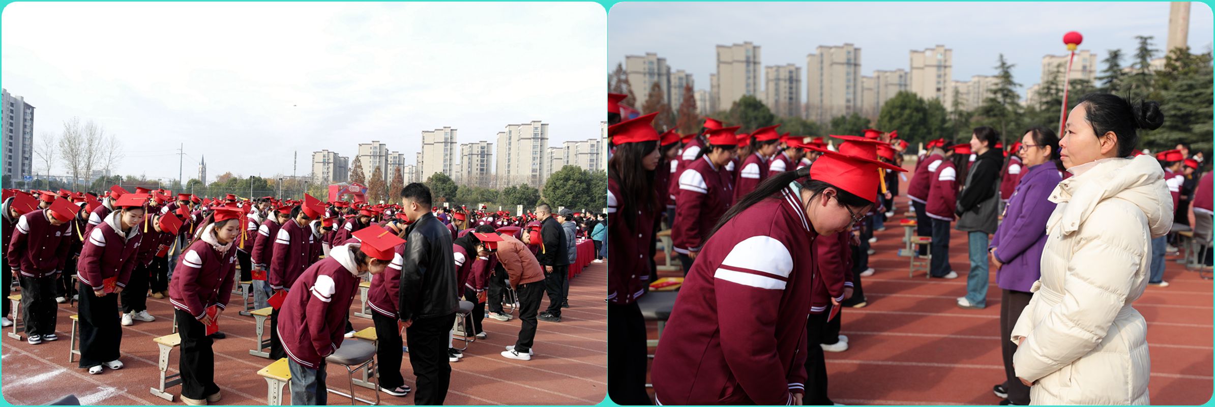 随着仪式推进,第二篇章 "十八而志・知思之念" 温情上演。领导嘉宾为学子佩戴成人帽、颁授《中华人民共和国宪法》,帽承师长期许,法护青春成长;学子们躬身肃立,向家长、师长行感恩之礼,敬谢养育教诲之恩。仪式之中,是成年的庄严宣告;宪法之上,是初心的坚定守望;感恩之间,是担当的自觉践行。学生代表闫娜娜同学分享成长感悟,表达了对学校、老师的诚挚谢意与对未来的美好憧憬。