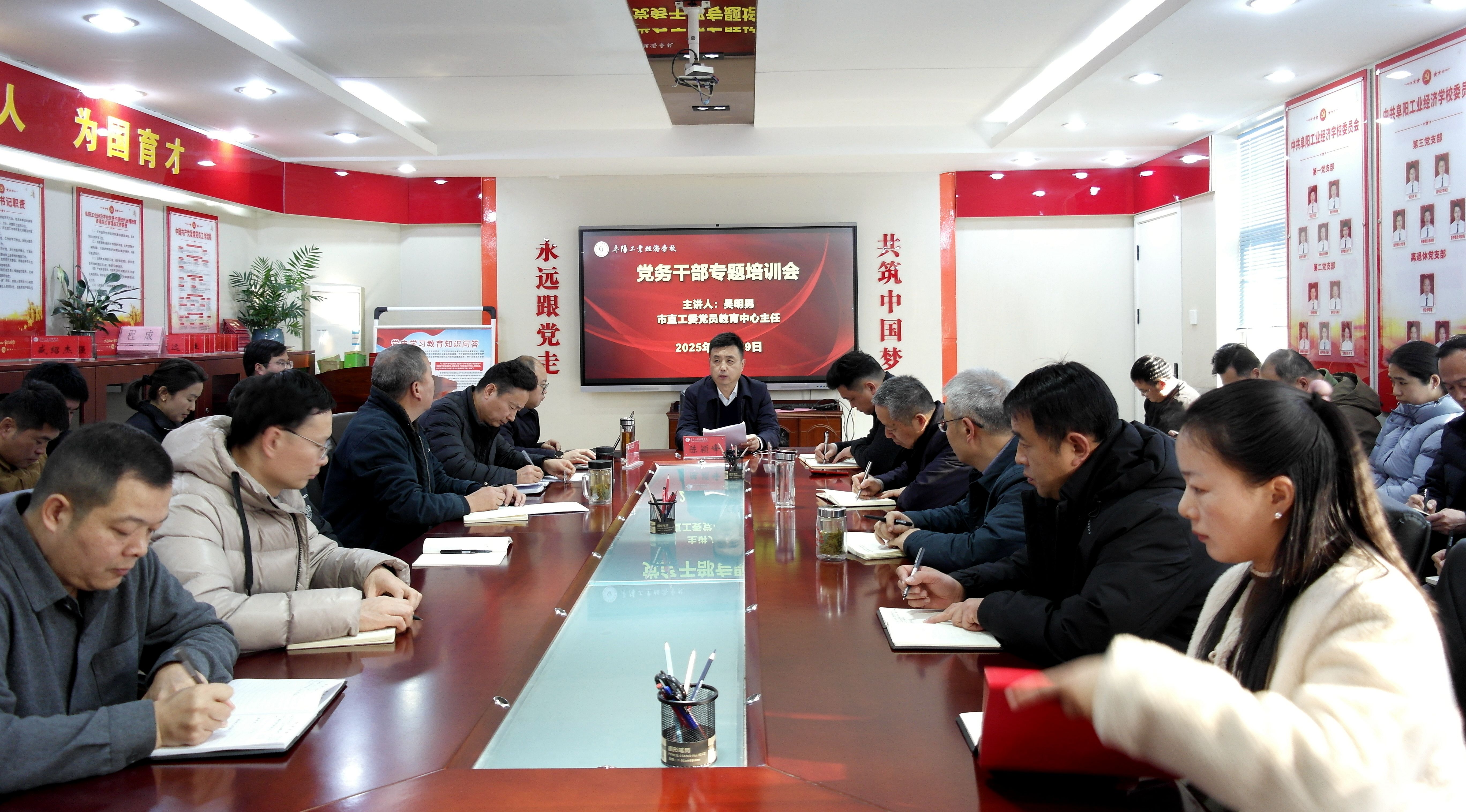 培训会上,吴明男主任以贯彻落实《中国共产党支部工作条例(试行)》为重点,紧扣 “打造坚强战斗堡垒” 主题,结合基层党建工作实际,从党支部的职责定位、设置方式、工作机制、组织生活规范等方面进行系统讲解。他通过列举典型案例、剖析实务难点,对党务工作中的重点环节和实操要求作出精准指导,既有理论高度,又有实践深度,为学校党务干部明晰工作方向,提供了切实可行的方法指引。