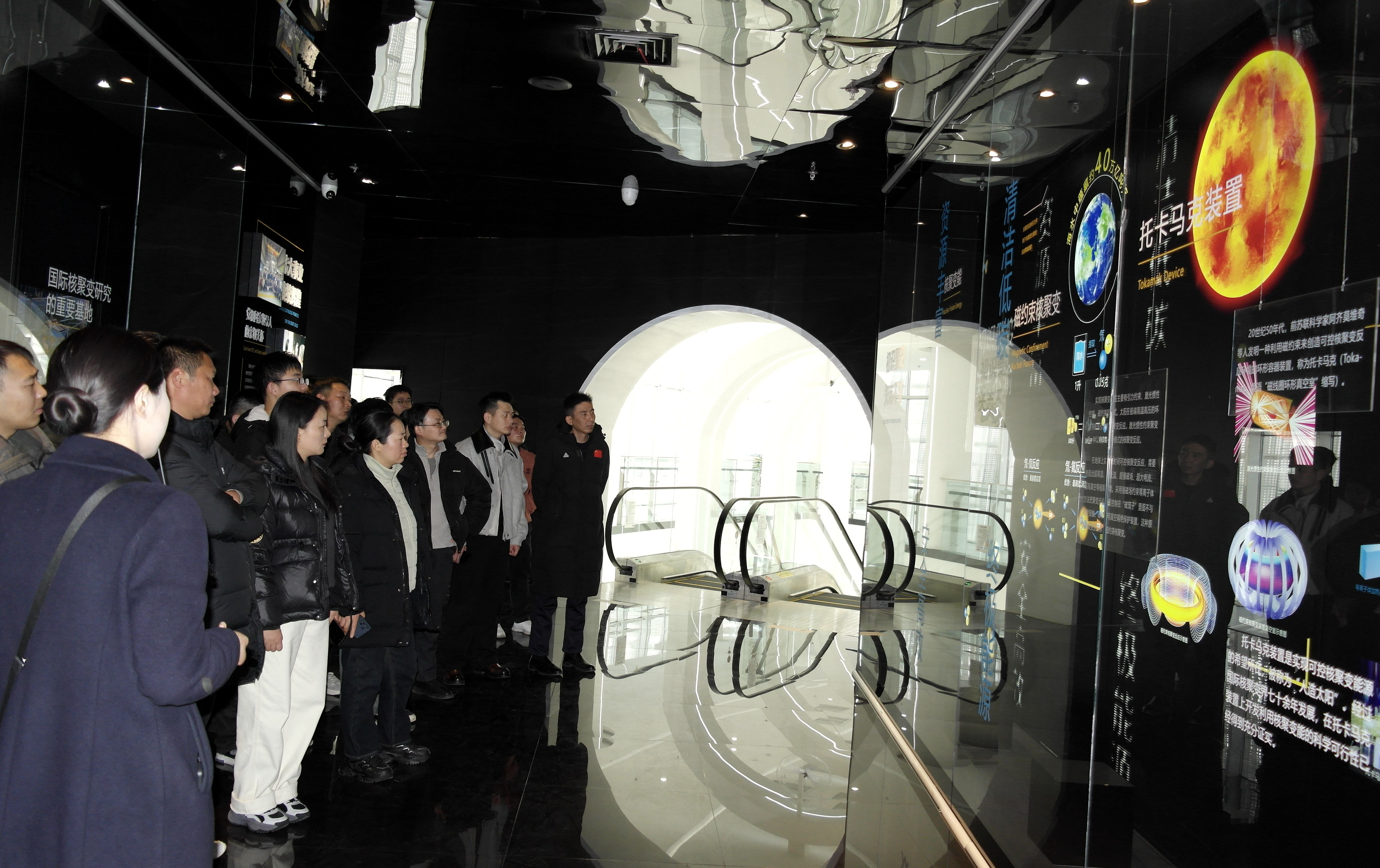 中国科学院等离子体物理研究所是国际热核聚变实验堆(ITER)计划的重要参与单位、全球磁约束聚变研究领域的国家级引领机构之一。学习团实地参观了“东方超环”(EAST)装置,现场了解其运行原理、核聚变能源研发进展及其潜在应用前景。通过近距离接触我国尖端科技的重大成果,师生们不仅直观感受到“大国重器”的磅礴力量,更深刻领悟了“大国工匠”精神的内核,进一步增强了民族自信心、向心力与凝聚力。