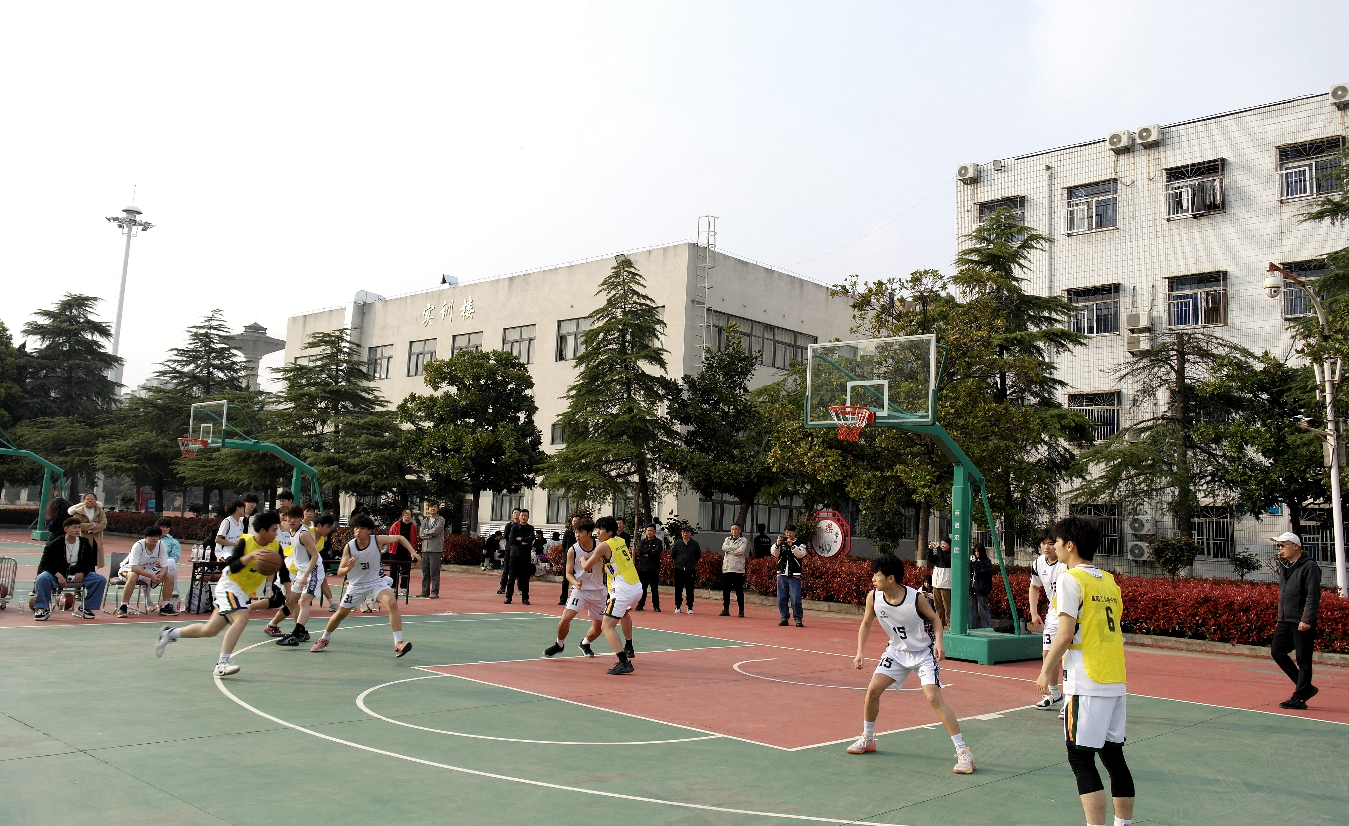 赛前,两校负责人围绕校园体育文化建设、学生体育素养培育等工作展开简短交流,大家一致表示,希望以本次篮球交流为契机,搭建两校常态化沟通桥梁。