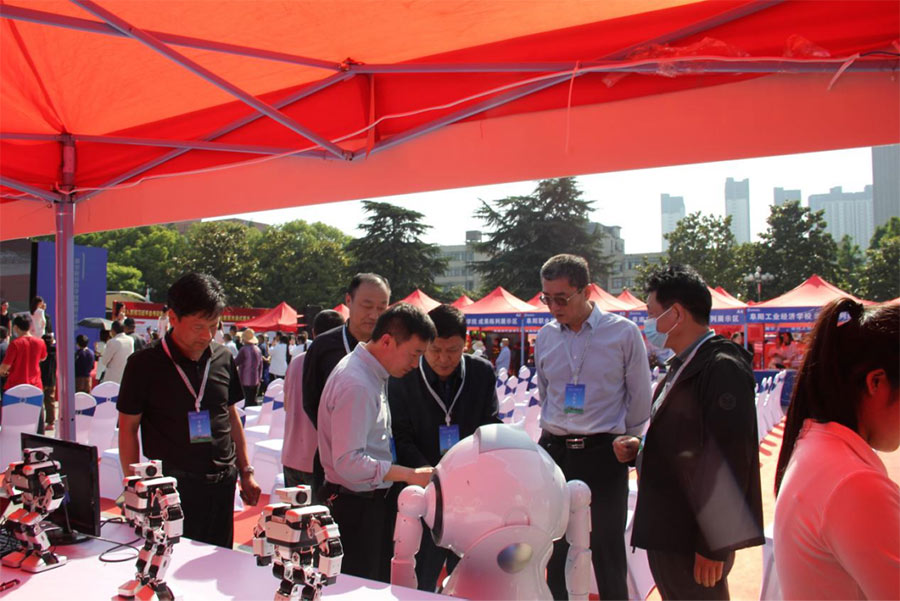 市领导巡视巡展,我校工作人员在认真讲解介绍