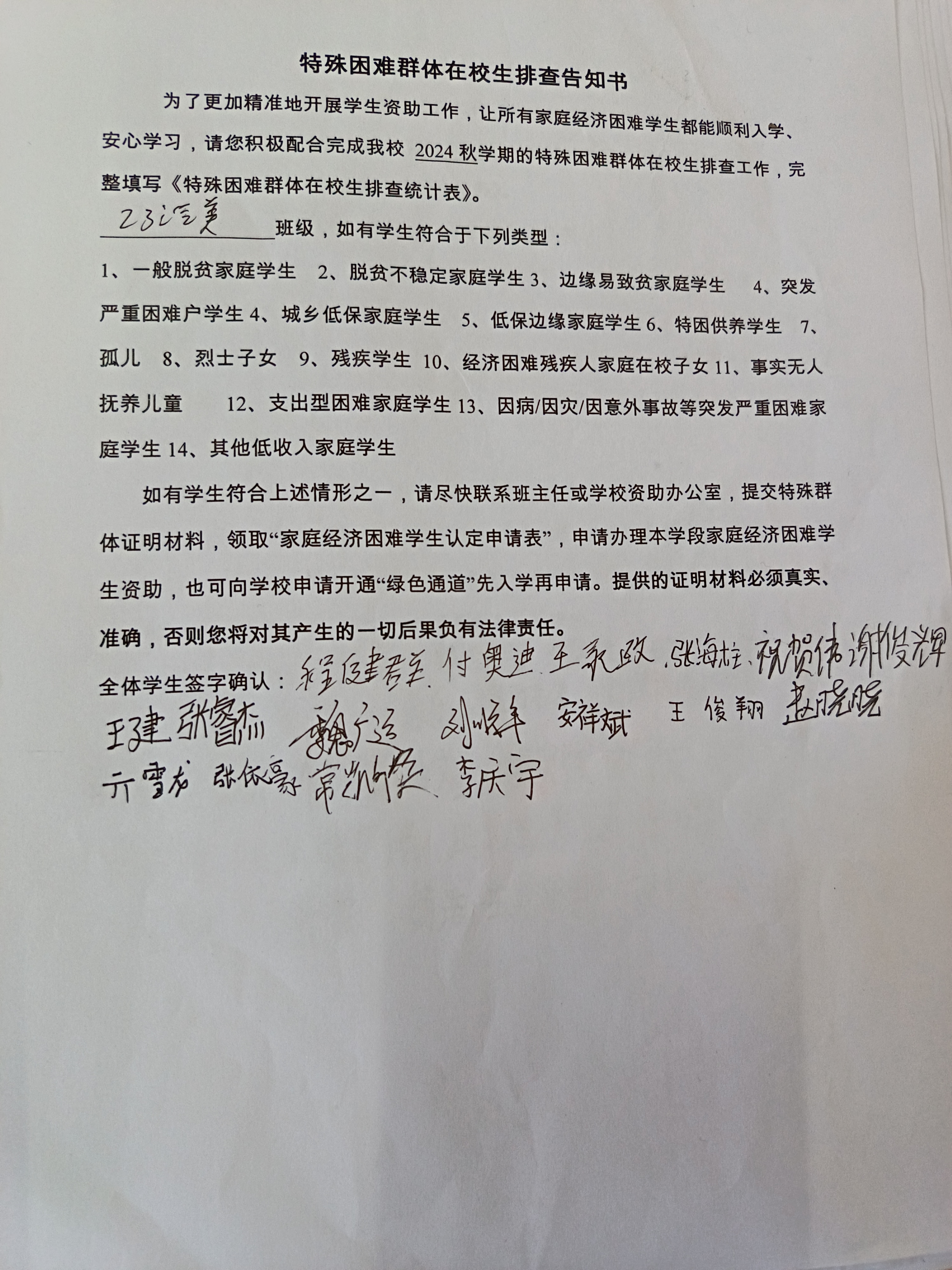 阜阳工业经济学校特殊困难群体在校生排查告知书
